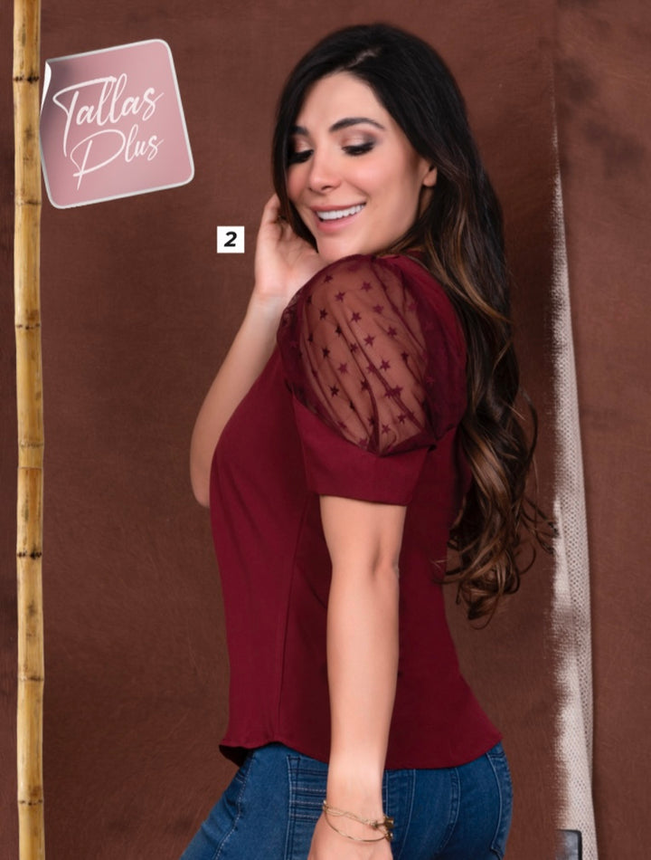 Elaborado: Transparencia en manga Chalis Silueta: Semiajustada Color: Vino Tinto